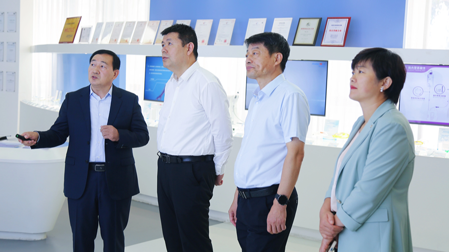 山東省藥監局醫療器械處處長吳世福,第三分局局長任曉楠陪同調研。